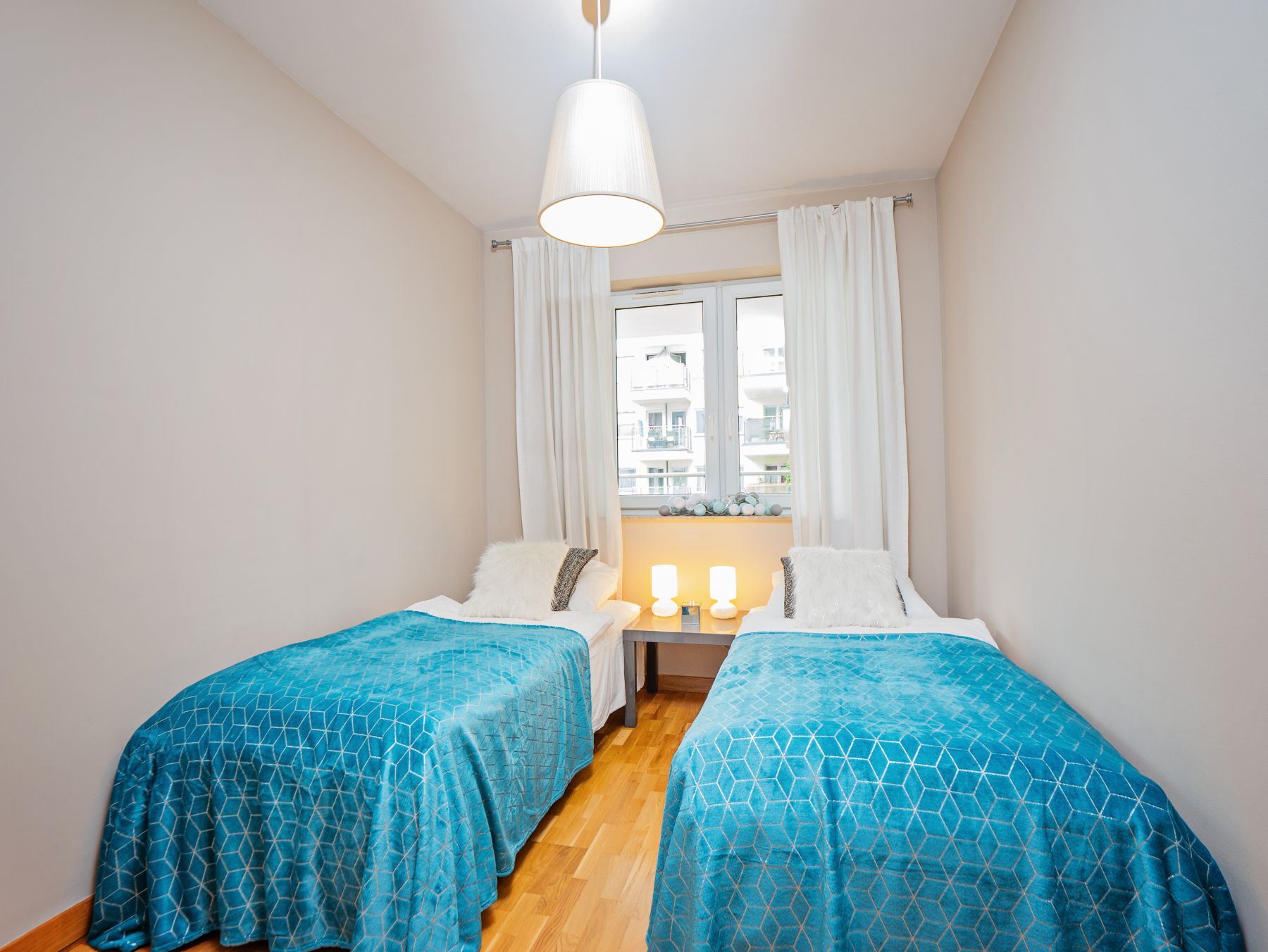 Apartament Miami o całkowitej powierzchni 75 m2 składa się z funkcjonalnej i przestronnej części dziennej połączonej z aneksem kuchennym, łazienki z dużą wanną z możliwością natrysku oraz dwóch sporych sypialni. W części wypoczynkowej znajdują się rozkładana 2-osobowa sofa, stolik kawowy oraz wyjście na balkon. Jedną sypialnię wyposażono w wygodne łoże małżeńskie typu King-Size a drugą w dwa jednoosobowe łóżka. W części kuchennej znajduje się kącik jadalniany. W Apartamencie znajduje się kawa i herbata.